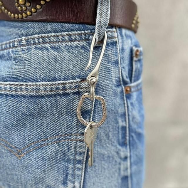 Button Worksオリジナルの真鍮製釣り針型フックに、取り外し可能なシャックルとSDオリジナルの2重リングを組み合わせています。