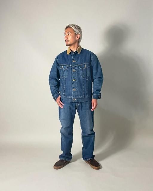 保温性を確保するためのブランケットライニングとコーデュロイ地の襟が特徴的なデニムジャケットです。