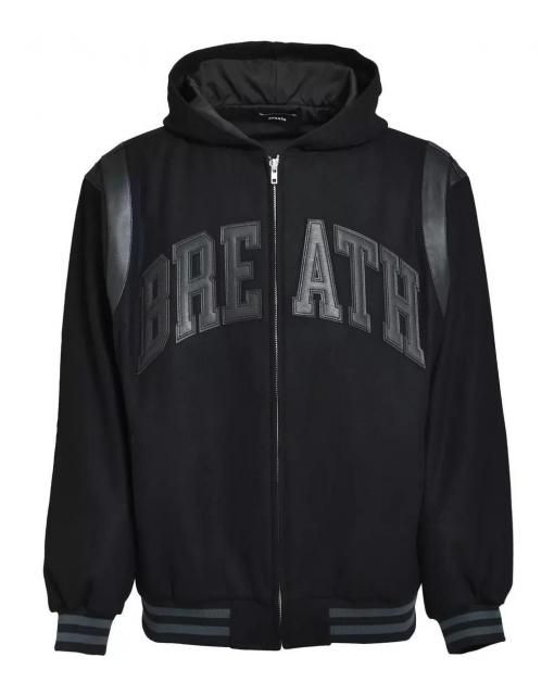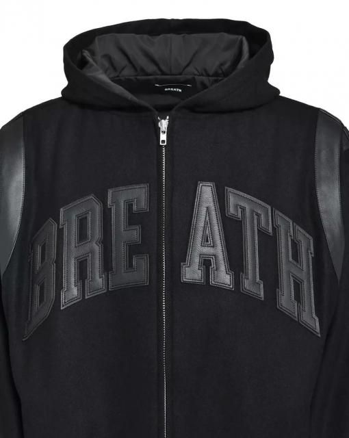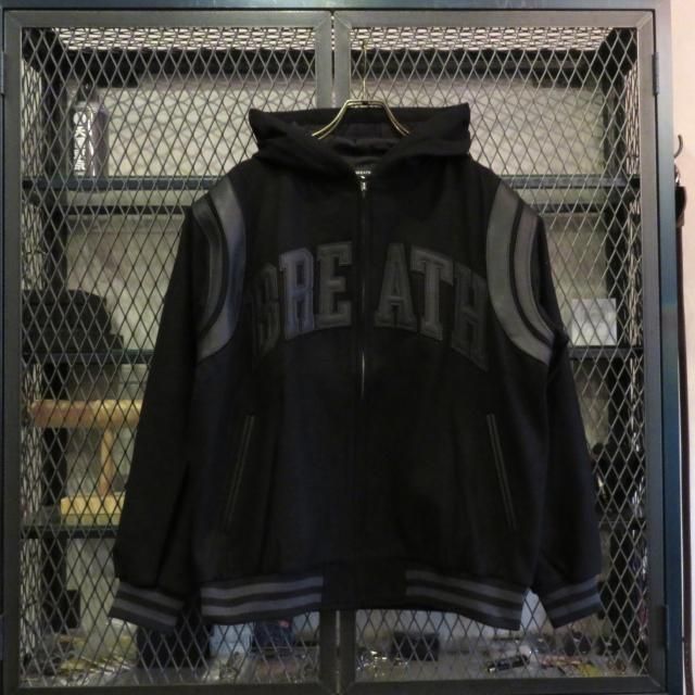 BREATH ARCH LOGO HOODED VERSITY JACKET(BLACK×BLACK)